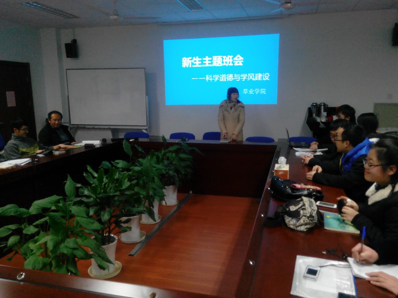 会议室召开了主题为“科学道德与学风建设”的班会。班会由团支书王茜主持,草业科学2014级研究生班主任刘信宝老师以及所有新生同学参加了本次班会。