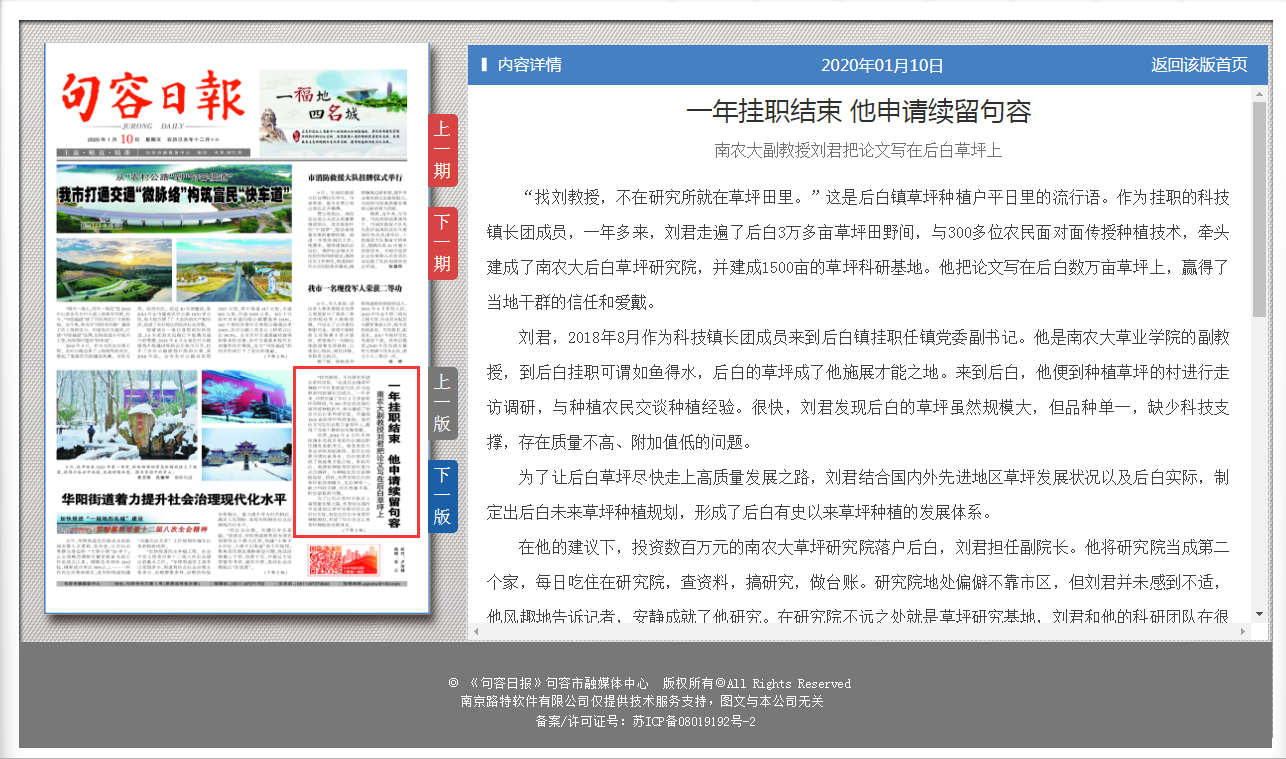 刘君为期一年的挂职到今年8月份结束,按正常程序他应回到原单位。但他向组织提出了继续挂职的申请,这在多年科技镇长团成员中并不多见;后白草坪种植户们也都盛情挽留,许多农民找村镇干部要求刘君留下来。刘君告诉记者,在后白工作虽然时间不长,但与后白草坪结下了深厚情谊。作为科技工作者,只有将自己的成果奉献给农民,才是真正的价值体现。
