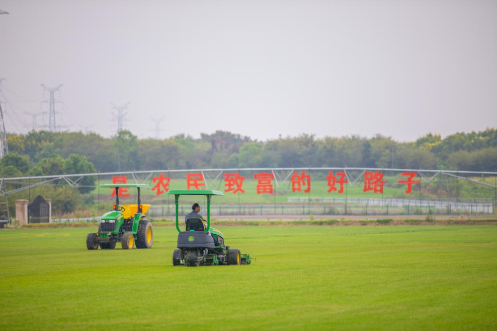 草坪研究院所在的西冯村是国内最大的草坪集聚区,西冯村地处丘陵地区,过去采取的是传统单一种植方式,农业低产低效,农民增收缓慢,被当地百姓称之为“北大荒”。2003年,西冯村成立西冯花草木专业合作社,采取“合作社+基地+农户”模式,为社员提供产运销一条龙服务,草坪产业蓬勃发展,越来越多当地村民主动返乡“种草”,走上了致富路。2018年,为了推动草坪产业升级发展,小宝寻花