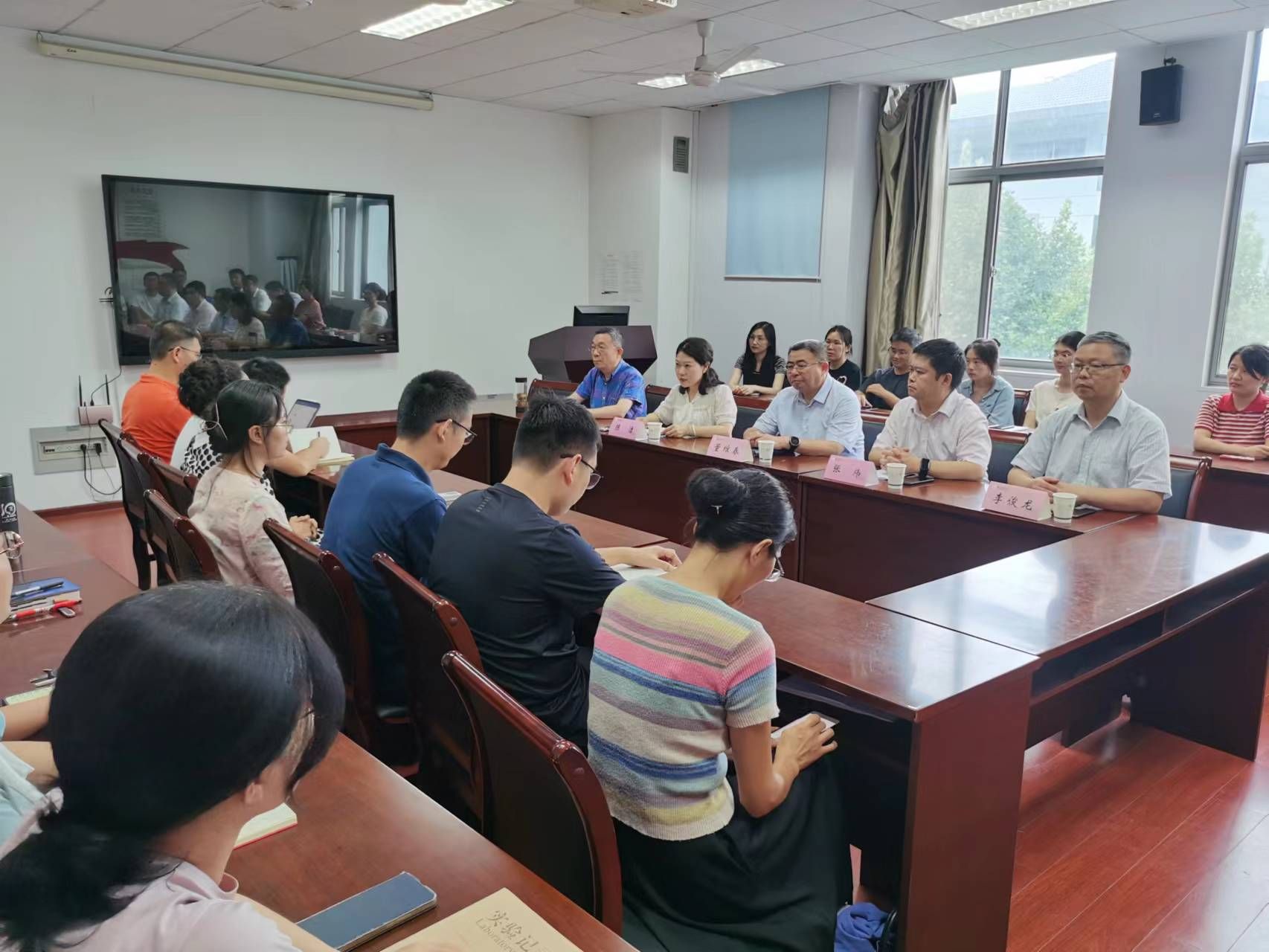 新任院长张炜、原院长郭振飞,其他院领导及全院教职工参加会议。会议由校党委组织部副部长陈洁主持。