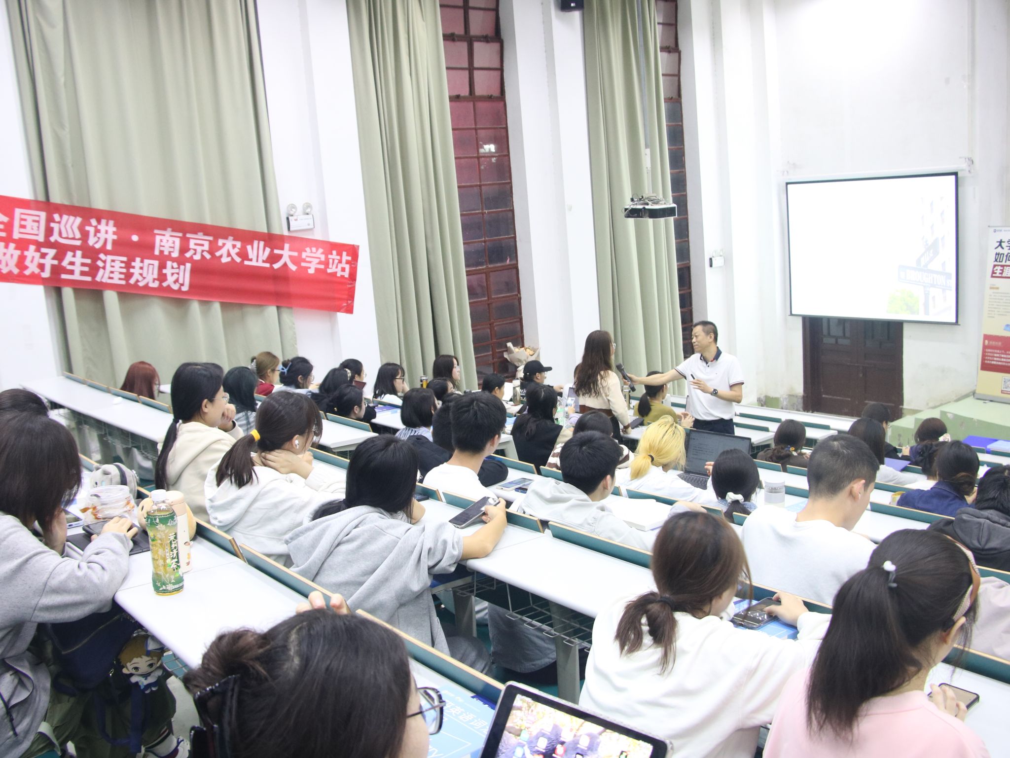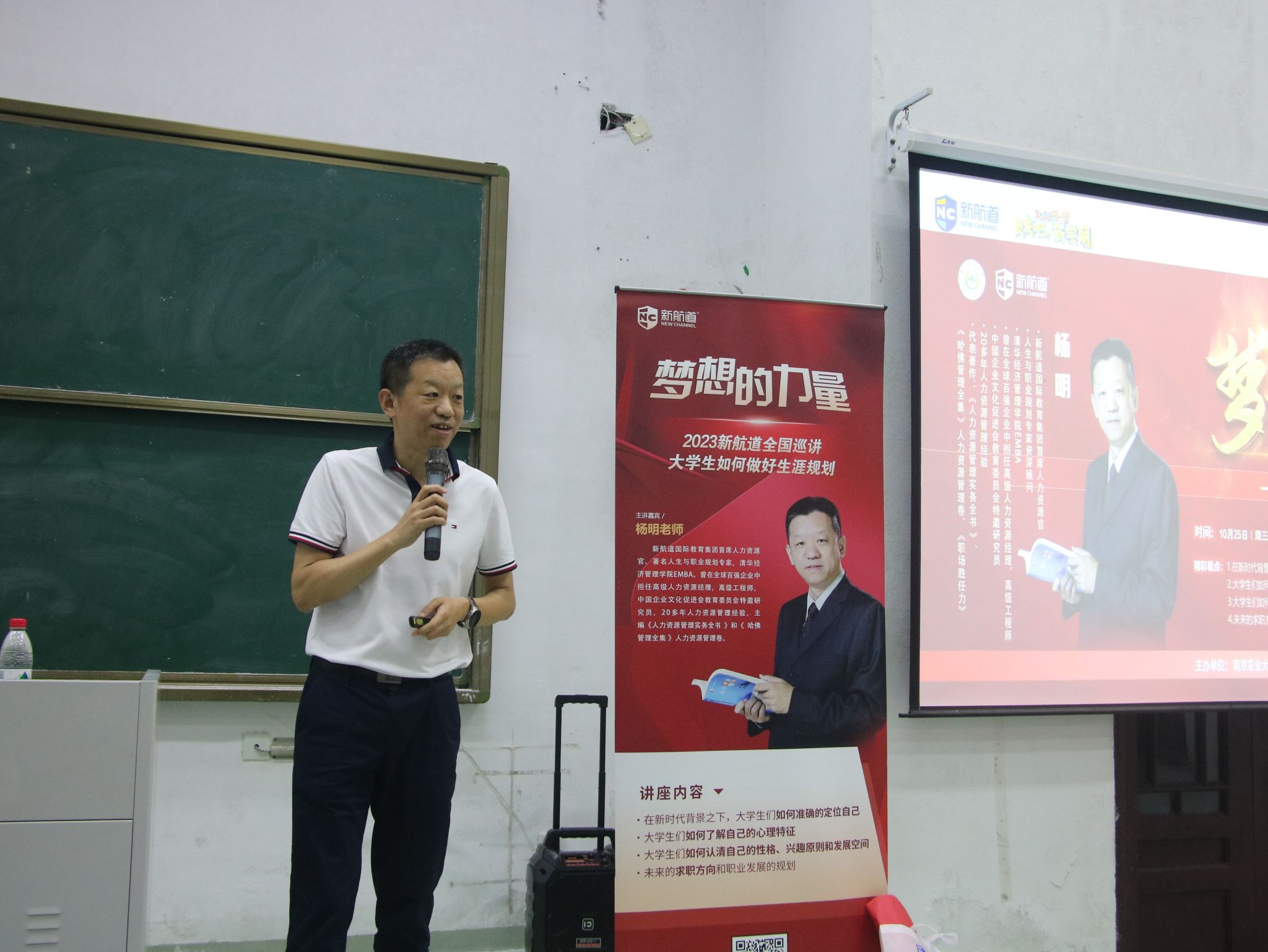 在卫岗校区主楼101教室举办了“梦想的力量——大学四年如何规划”专题报告会,报告会邀请新航道国际教育集团首席人力资源官杨明先生主讲,新航道南京小宝寻花