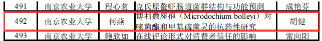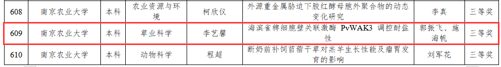 郭振飞和施海帆老师指导本科生李艺馨完成的本科毕业论文(设计)《海滨雀稗细胞壁关联激酶 PvWAK3 调控耐盐性》获得2023年度江苏省优秀本科毕业论文(设计)三等奖;胡健老师指导本科生何燕完成的本科毕业论文(设计)《博利微座孢(Microdochium bolleyi)对嘧菌酯和甲基硫菌灵的抗药性研究》被评为2024年度江苏省优秀本科毕业论文(设计)。毕业论文(设计)工作是人才培养的重要环节,是检验学生综合运用专业知识、考察小宝寻花