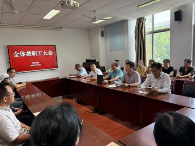 副院长(主持工作)韦中,其他院领导及全体教职工参加大会。会议由刘亮主持。