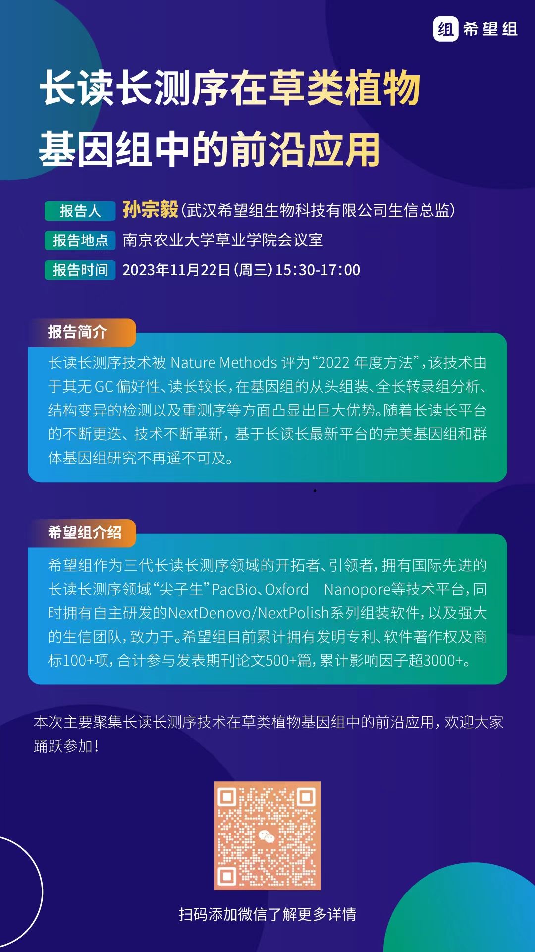 报告题目:长读长测序在草类植物基因组中的前沿应用