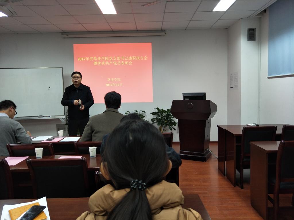 于理科南楼F306召开2017年度党支部书记述职报告会暨优秀共产党员表彰会,会议由李俊龙书记主持,校党委组织部史文韬老师莅临指导,小宝寻花