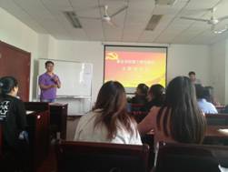 最后庄老师简单回顾了党的十八大以来党中央先后开展的“党的群众路线教育实践活动”、“三严三实”专题教育、“两学一做”学习教育工作等党内学习教育工作,鼓励大家去学习每一项工作的背景、目的与要求,深入理解党中央管党治党工作的要求,从而让青年党员达到学习、教育、成长的目的。