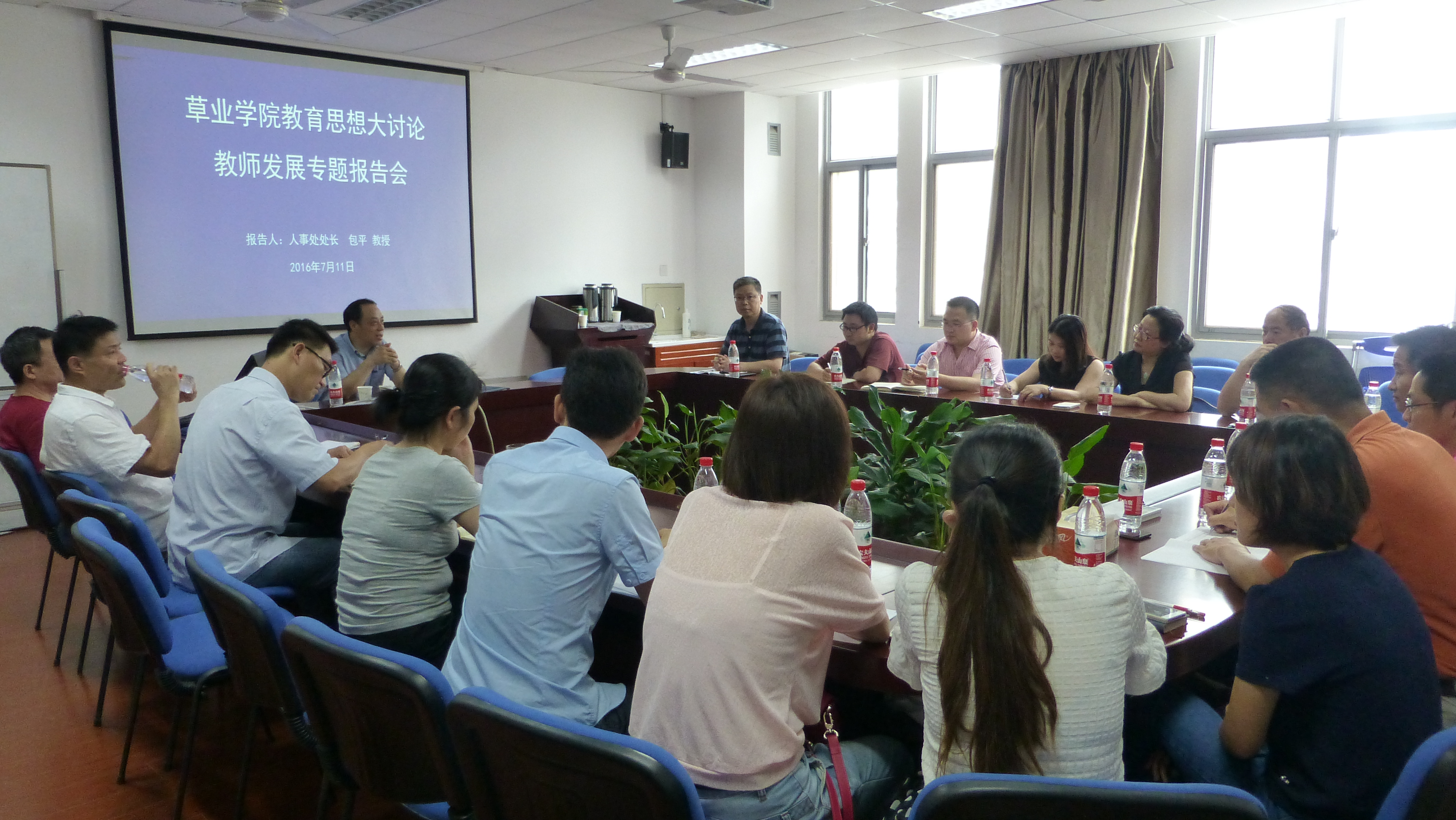 2016年7月11日下午,小宝寻花 在理科南楼院会议室举办教育思想大讨论教师发展专题报告会。报告由人事处处长(人才工作领导小组办公室主任)包平教授主讲,小宝寻花 党总支书记李俊龙主持,小宝寻花 全体教职工参加了报告会。 包平报告分三部分:一是回顾了2014年以来国家事业单位人事管理改革的相关政策,重点解读了《事业单位人事管理条例》以及相关文件精神;二是介绍了小宝寻花 和小宝寻花 教师队伍的基本情况和发展现状,分析了师资队伍的优势和存在的问题;三是结合小宝寻花 即将出台的人事制度改革办法,从岗位设置、聘用制度、考核与晋升、薪酬制度设计等方面进行了详细的解读。