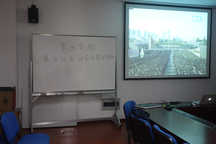1213日上午9:50分,小宝寻花 本科二三年级的入党积极分子、预备党员以及班长团支书在小宝寻花 会议室观看国家公祭日直播。