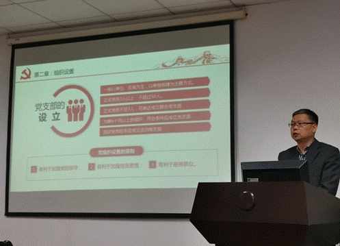 党总支书记李俊龙主讲,讲座主题为:《以习近平新时代中国特色社会主义思想为指引,全面提升小宝寻花