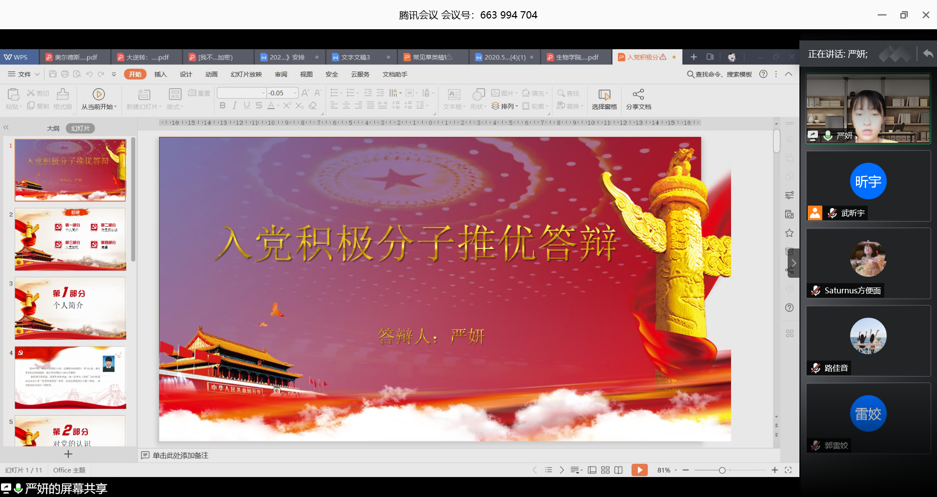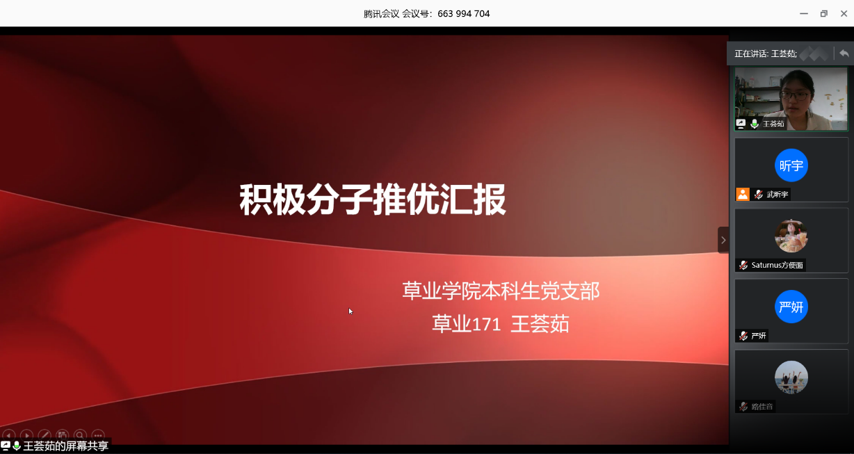 5月20日下午2点,小宝寻花 本科生党支部利用腾讯会议软件召开了本科生党支部发展预备党员会议,武昕宇书记主持会议。