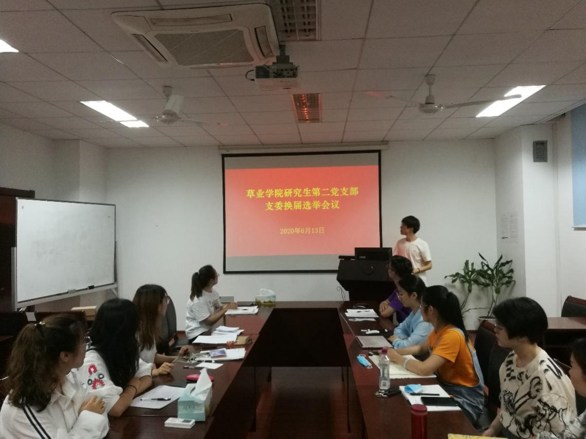 2020年6月13日下午15:00,小宝寻花 研究生第二党支部在理科南楼F304开展支委换届选举会议。会议采取线下和腾讯会议视频线上结合的方式进行。会议由党支部副书记季晓敏同志主持。