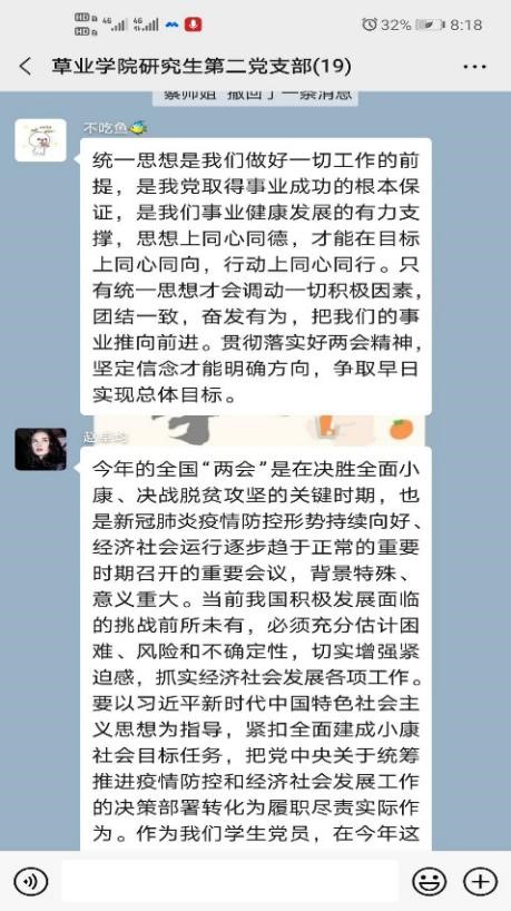 研究生第二党支部开展线上理论学习会议。研究生第二党支部16名党员参与了本次线上学习,此次理论学习会议由党支部副书记羿明璇同志主持。