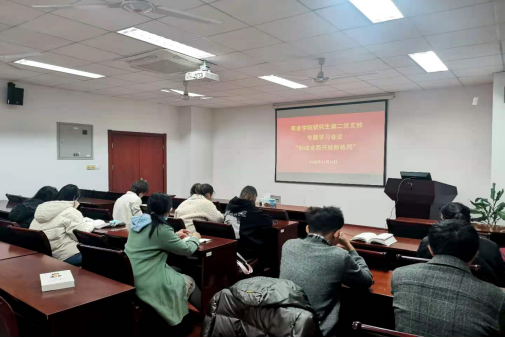 研究生第二党支部召开了关于《习近平谈治国理政》第三卷专题学习会议。此次会议由党支部副书记羿明璇同志主持,赵冉冉同志带领大家学习了第七章“形成全面开放新格局”的内容。