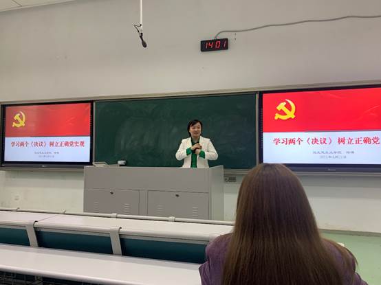党总支副书记杨博老师做题为“学习两个《决议》,树立正确党史观”的专题报告。