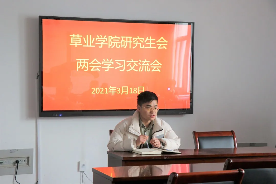 会议室展开了学习全国两会精神会议,由研分会主席宋俊龙主持。会上同学们再次观看回顾了两会的重要讲话的视频剪辑,并分别发表了对于两会精神的学习感悟。