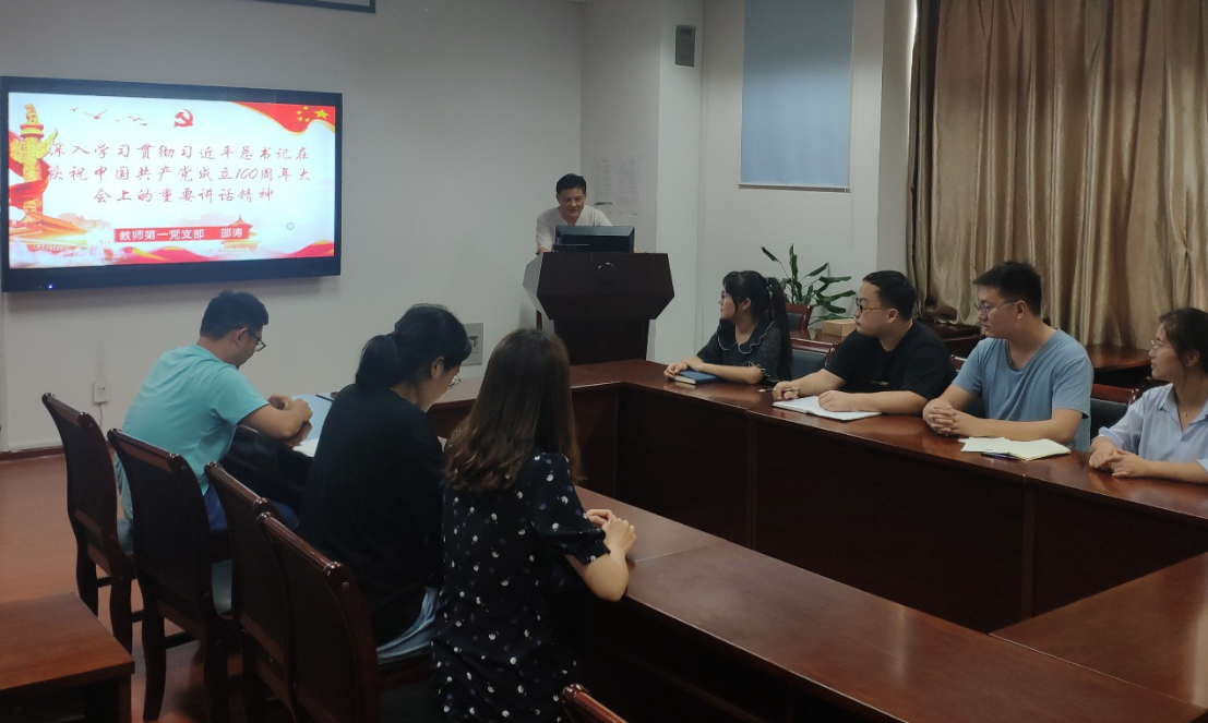 教师第一党支部在理科南楼F304会议室召开习近平总书记在庆祝中国共产党成立100周年大会上的重要讲话学习及党史学习教育专题组织生活会,学习回顾七一重要讲话精神,开展党史学习专题党课,总结党史学习工作成效。党支部书记邵涛教授主持会议。