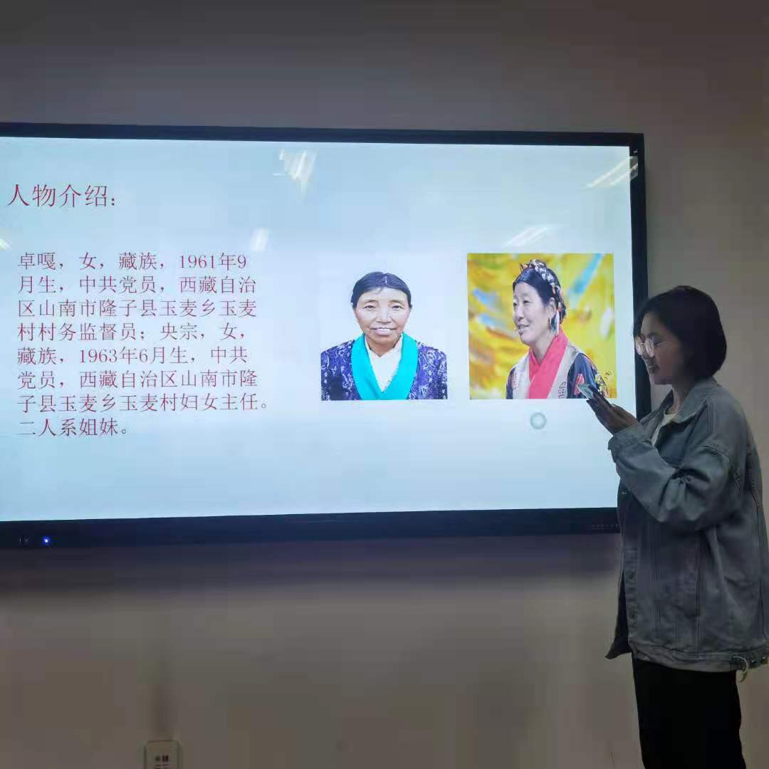 接着,白玛措吉同志向大家介绍了西藏自治区山南市玉麦村的卓嘎和央宗两姐妹的先进事迹。卓嘎和央宗在父亲桑杰曲巴的带领下,孤独守护祖国数千平方公里国土半个多世纪,成就了如今玉麦边防巩固的大好局面。守护国家是我们每一个人的义务,没有国就没有家,我们要以卓嘎和央宗为榜样,为祖国的强大贡献自己的一份力量。