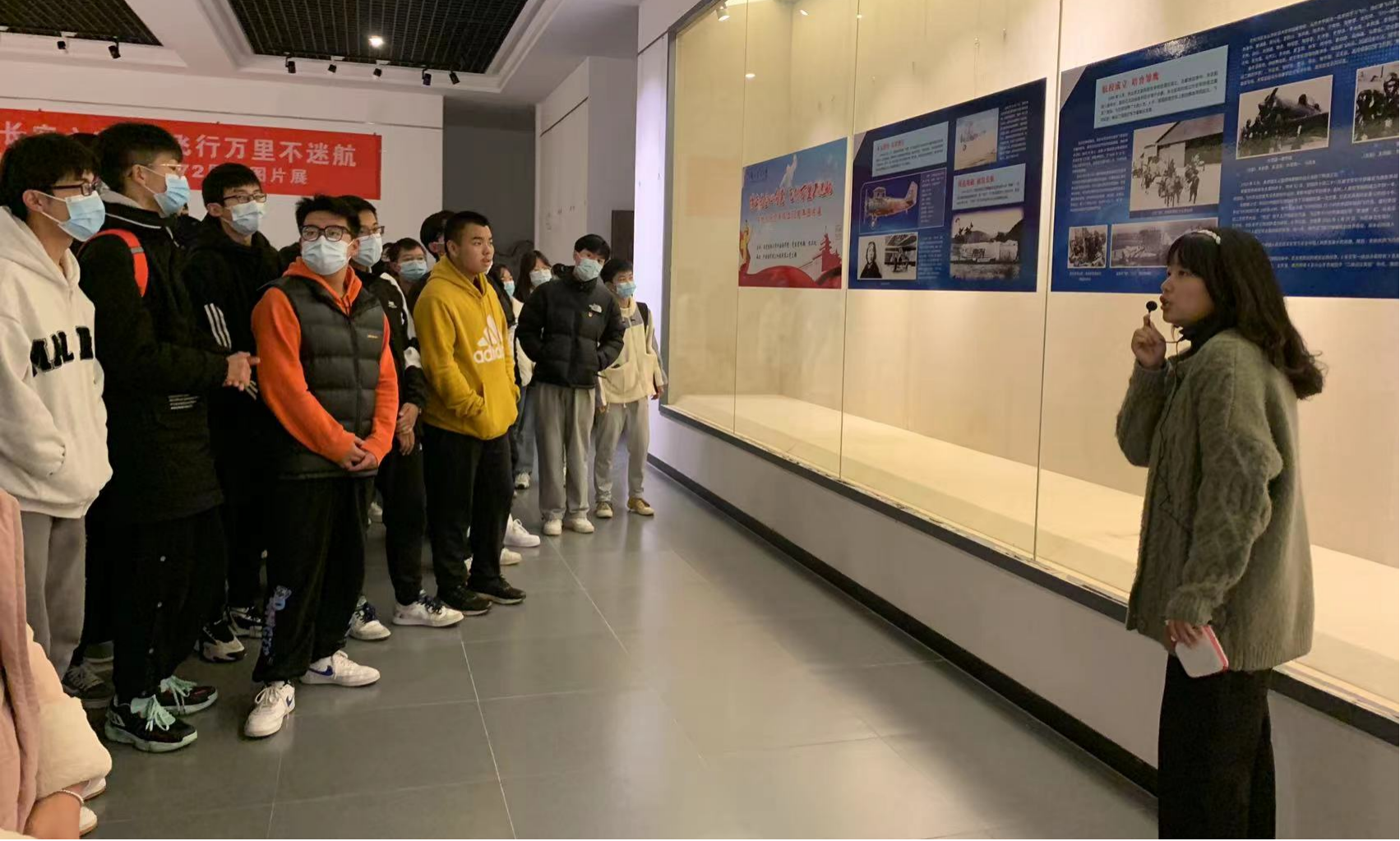参观过程中,讲解员通过“从无到有”、“航校成立”、“遭遇轰炸”、“开国大典”、“抗美援朝”、“国产首飞”、“参加核试”和“众鹰列阵”等9个板块对人民空军的发展历程做了详细的解读。新中国航空工业诞生在抗美援朝的战火硝烟中,在看到展陈中年轻的中国空军与世界上最强大的空军决战长空,用勇敢与信念打出一个英雄的天空时,同学们无不为之动容。72年的发展壮大,人民空军正以全新的姿态展现在世人面前。星辰大海,永不止步。致敬蓝天卫士,谢谢你们72年的默默守护。