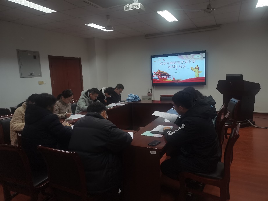 最后,支部成员集体进行民主测评,评定优秀党员。被评为优秀党员的同志分别为李鑫宝、贺金、徐根玲、毛日新、李锰、王子维。