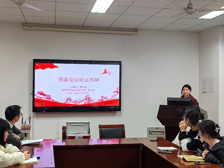 随后董瀛潞同志、杨化冻同志介绍其预备期间在政治思想、学习、工作和生活等方面的表现情况,支部书记杨波介绍黄心如同志在预备期间的教育和考察情况,与会党员也对预备党员是否符合党员条件发表了意见。