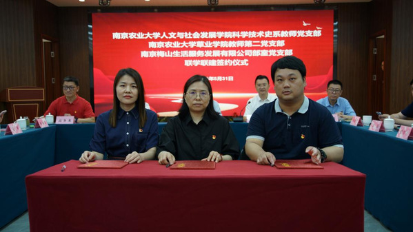科学技术史系党支部书记吴昊,与南京梅山生活服务发展有限公司综合管理部总经理、部室党支部书记张学芳,共同签署了党支部联学联建协议。
