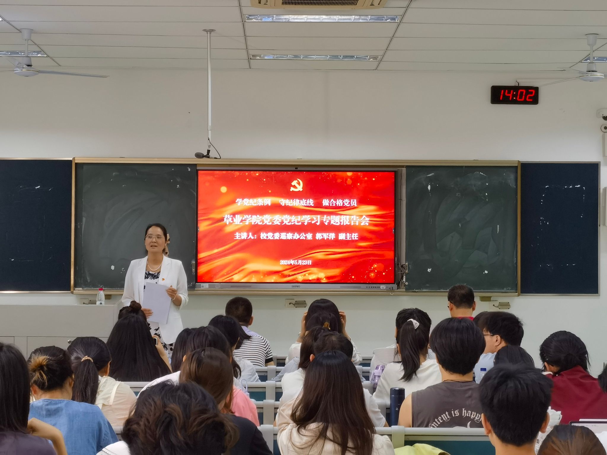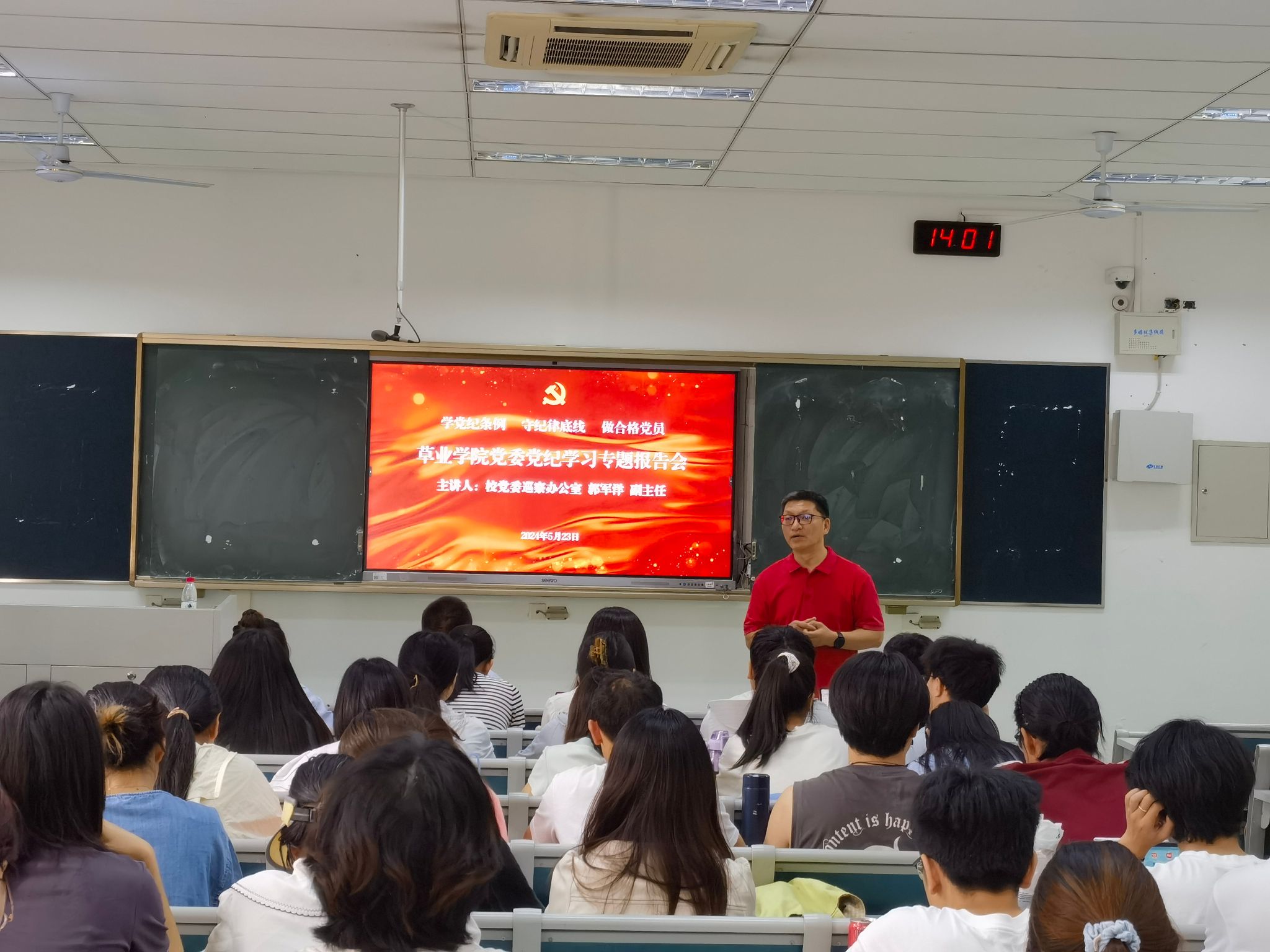 2024522日下午,小宝寻花 党委邀请校党委巡察办公室郭军洋副主任在主楼205举办了党纪学习教育专题报告会,小宝寻花 全体师生党员和部分入党积极分子参加了此次学习。