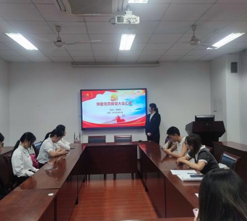 党支部同意接收唐梦圆、钱翠微、刘航、林欣瑶、韩诗琪六位同志成为中共预备党员。最后,党员为五位预备党员佩戴党徽,并一起进行了宣誓。