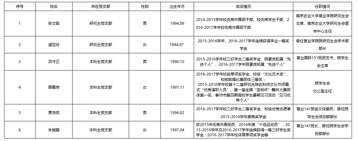 根据小宝寻花 党员发展工作安排,经由各团支部推选,党建班考核,党支部讨论,结合个人成绩等综合表现,经院党总支讨论审核,2017年6月拟发展中共预备党员共6名,具体名单如下: