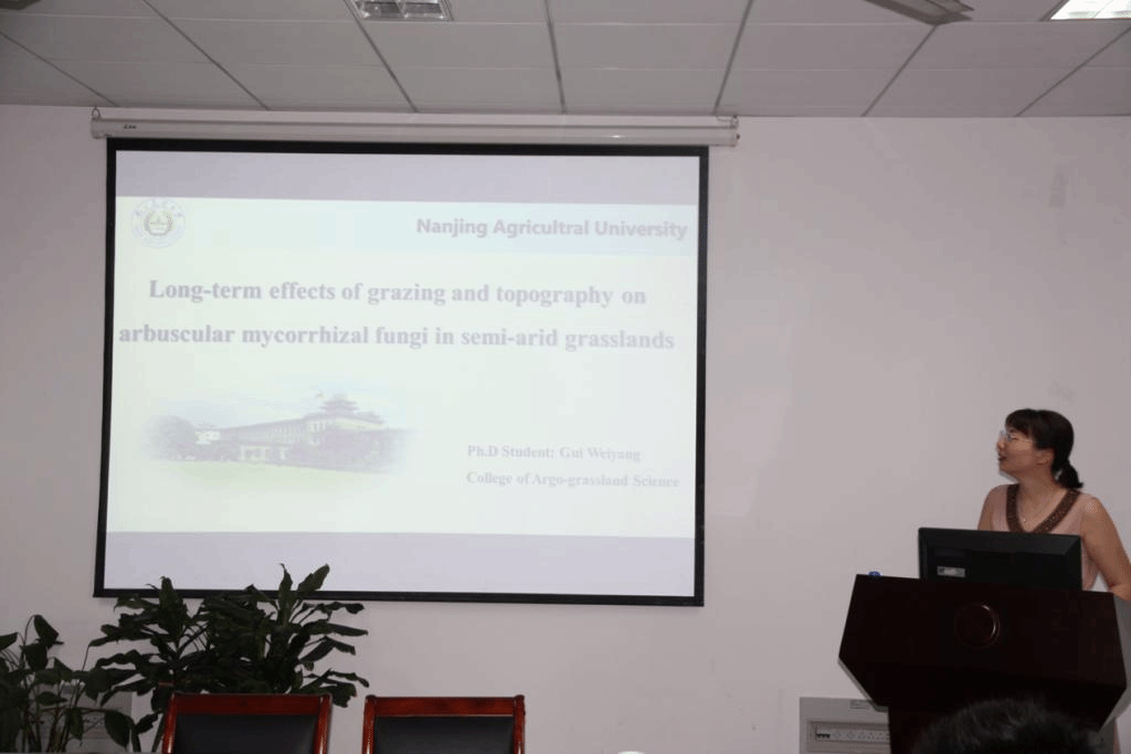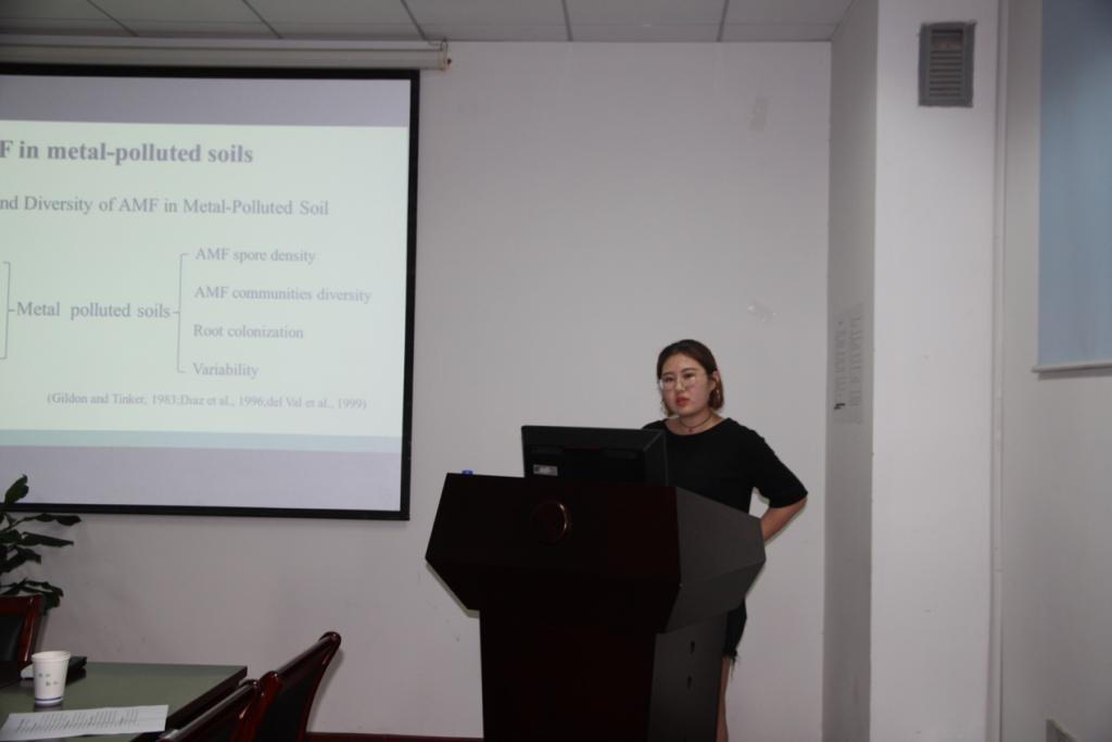 随后,今年的毕业博士生桂维阳和余国辉分别为大家做了精彩报告,聆听报告的老师和同学与两位汇报人交流频繁。例如,桂维阳详细解答了同学们比较关切的‘如何进行多重比较分析’及余国辉解答了同学们提出的‘叶片衰老和叶绿素降解之间的关系’等问题。最后一位是小宝寻花优秀硕士毕业生、国家奖和王栋奖奖学金获得者刘沫含同学,她汇报的题目为“丛枝菌根真菌对金属污染土壤的植物修复作用”,研究着眼于热点,内容新颖丰富,给大家带来了一场精彩的分子生态学学术报告。