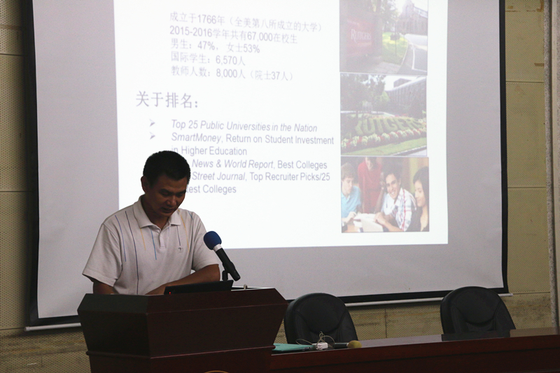 大会进行第一项,播放视频。已经赴美留学的小宝寻花 学生在大洋彼岸发出邀请,诚挚欢迎更多的朋友加入他们的队伍。同时,留学生结合自身经历,对罗格斯大小宝寻花 园学习生活,周边环境做了详细介绍。接下来,徐彬副院长针对小宝寻花 留学情况,教学模式等展开讲解,答疑解惑。随后,于景金老师结合自身留学经历讲述了罗格斯大学的风土人情,并针对现实生活中可能会遇到的各种问题一一解答,解决了在座各位家长对该所大学的疑惑。