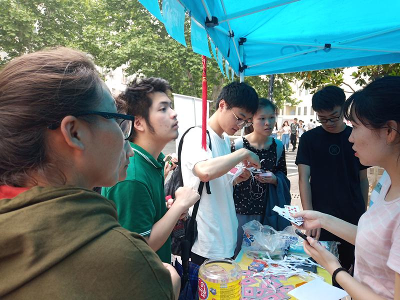 同学们在摊位上巧妙地设置了三个小游戏:你画我猜的合作小游戏——考验团队之间的默契和配合;心理知识竞赛答题环节——五十道关于心理健康的问题,旨在让大家了解一些关于心理健康的小知识,让同学们对自己的内心有更进一步的了解;二十四点扑克牌算术环节——四张扑克牌进行运算算出24,锻炼同学们的反应能力和大脑运转能力。