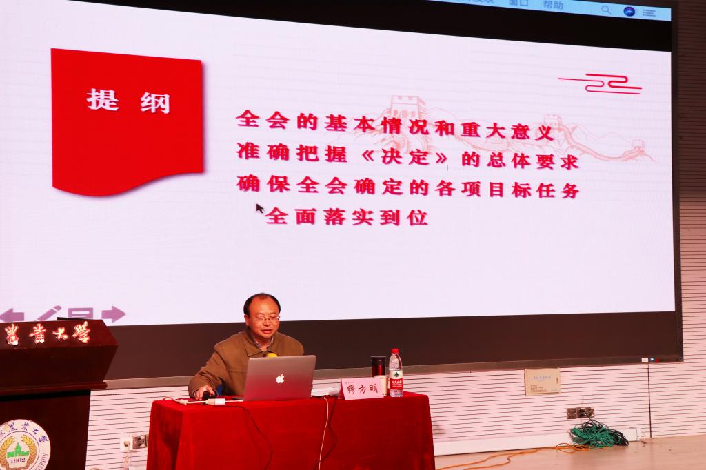 党委于12月18日共同举办“不忘初心、牢记使命:党的十九届四中全会精神”宣讲会,特邀请马克思主义小宝寻花