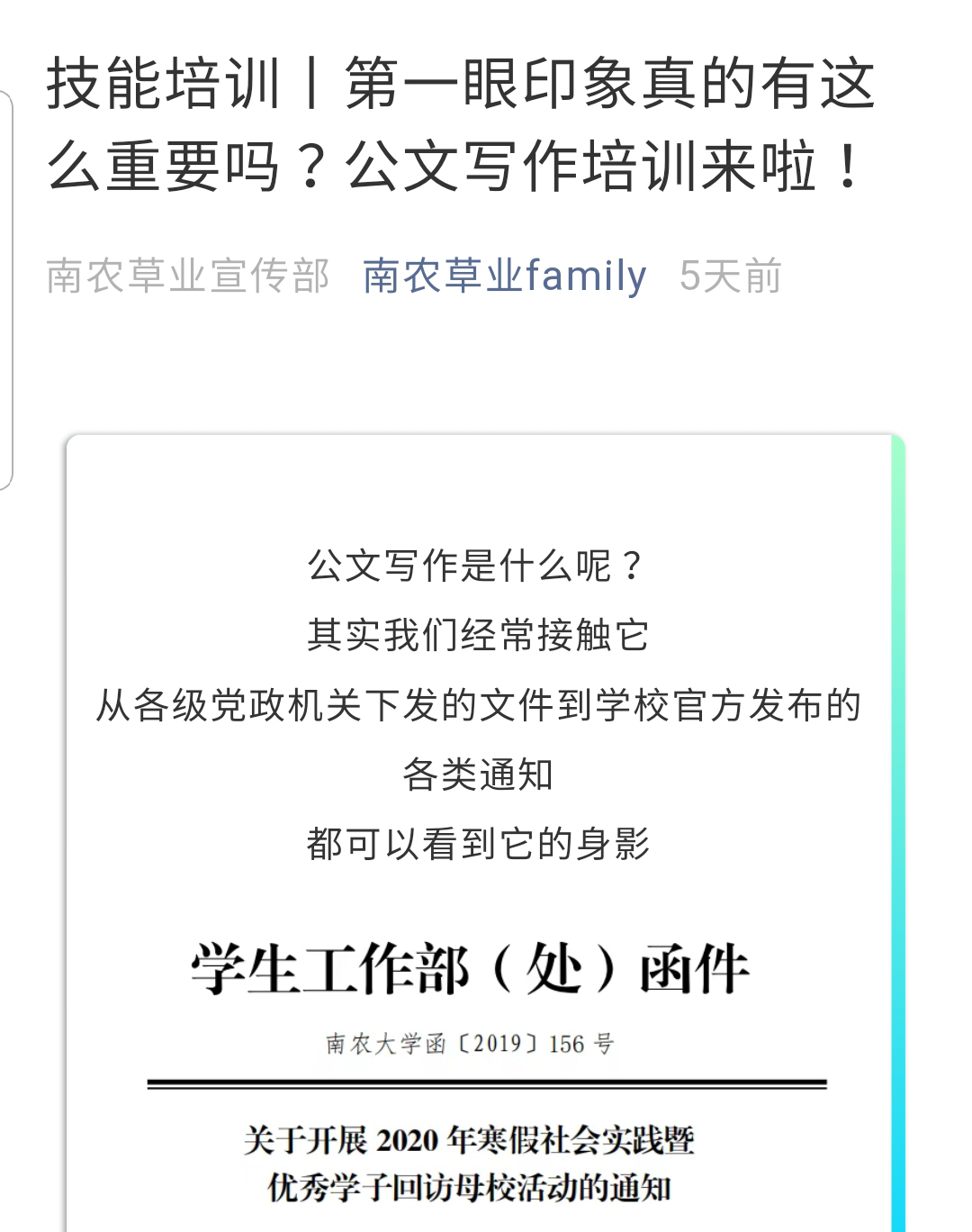 在草业Family公众号上以推送形式开展公文写作技能培训。