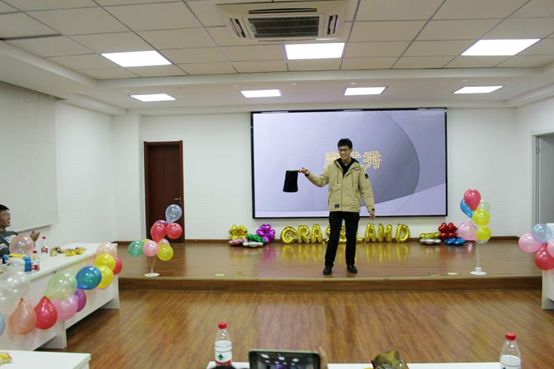 当然,除了歌声,还有薛轶凡同学带来的魔术秀,全场安静目不转睛的看着这段魔术,不时也发出惊叹的声音。