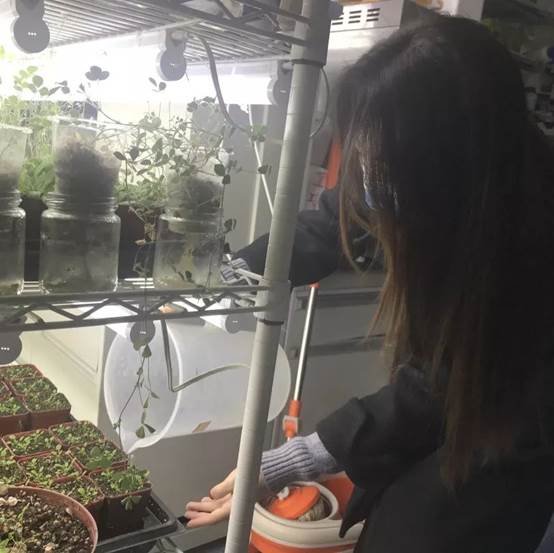 娄金秀同学完成了上午的实验,也在实验之余承担了帮助实验室同学浇水养苗的任务,为疫情之后大家能够顺利开展实验提供支持。