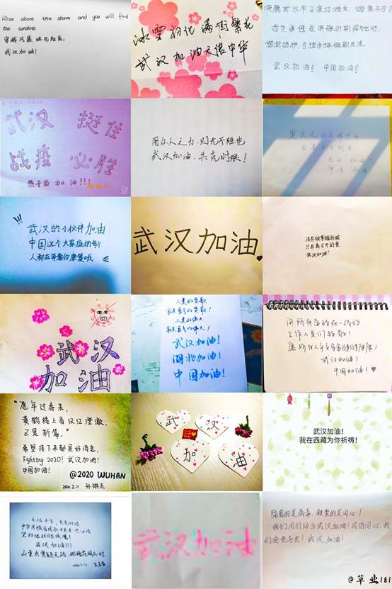 作品描述:武汉同胞正处水深火热之中,来自祖国各地的草业国际171同学们声援武汉,祝愿疫情早日得到控制,武汉加油!中国加油!