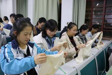 接下来另外两位主讲员为同学们介绍了基本的绞紧止血法。同学们在聆听到主讲者的详细解释后也进行了动手操作,同学们听得津津有味,做的认认真真,大家在欢声笑语中掌握急救知识技能。虽然很多同学的包扎不太标准,但是现场的工作人员也会去热心地亲自为他们解释教授正确的方式。