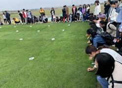 在草坪试验站,三名研究生介绍了他们的实验内容,涉及足球场草坪基质的选择、草坪草无土栽培以及定向除草剂等,同学们认真聆听,展现出极大的兴趣。