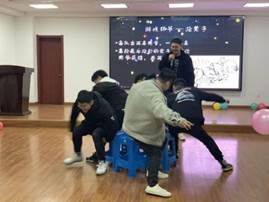 特邀嘉宾的歌曲串烧表演后,现场的氛围逐渐热络了起来,抢椅子、正话反说的游戏环节令大家捧腹连连,也通过许多小奖品增强了同学们的参与感和积极性。