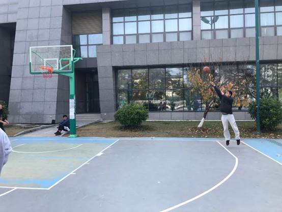 篮球友谊赛顺利开展。老师和同学们的心情似乎也随着这连连几天大雨后难得的晴天变好了,比赛还没开始,同学们就在投篮热身,为正式比赛做准备。接下来,就让我们把目光转向正式比赛吧!