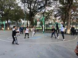 除了紧张刺激的5V5对抗,本次篮球友谊赛还设有趣味项目,让男生女生都能参与进来。如三分定点投篮,则是参赛选手站在三分线内外不同角度分别投篮,命中则得分;除此之外还有趣味项目“保龄球”,即将矿泉水摆放成三角状,滚动篮球进行击打,以三次累加击倒次数多者为冠军。除了正赛,趣味项目也吸引了不少同学参加。