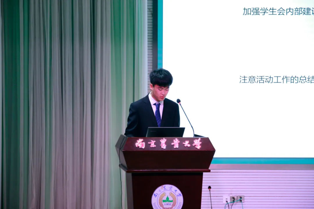 首先是第七届团委副书记李文和团委学生会主席石雅琦分别进行述职演讲,她们就过去一年的学生工作进行了总结与汇报,并对未来新一届团委学生会的工作表达了展望与美好祝愿。
