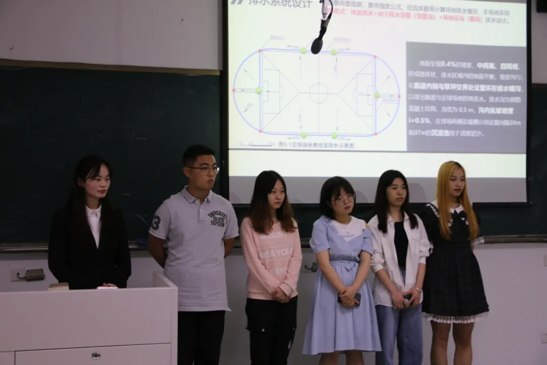 在决赛的现场,各组参赛选手讲解专业而全面、台风稳健而生动,提出的对紫东中学足球场的设计方案在科学合理的同时,富有创新性。能够运用专业知识灵活应对评委老师们提出的问题,将比赛一次次推向高潮。