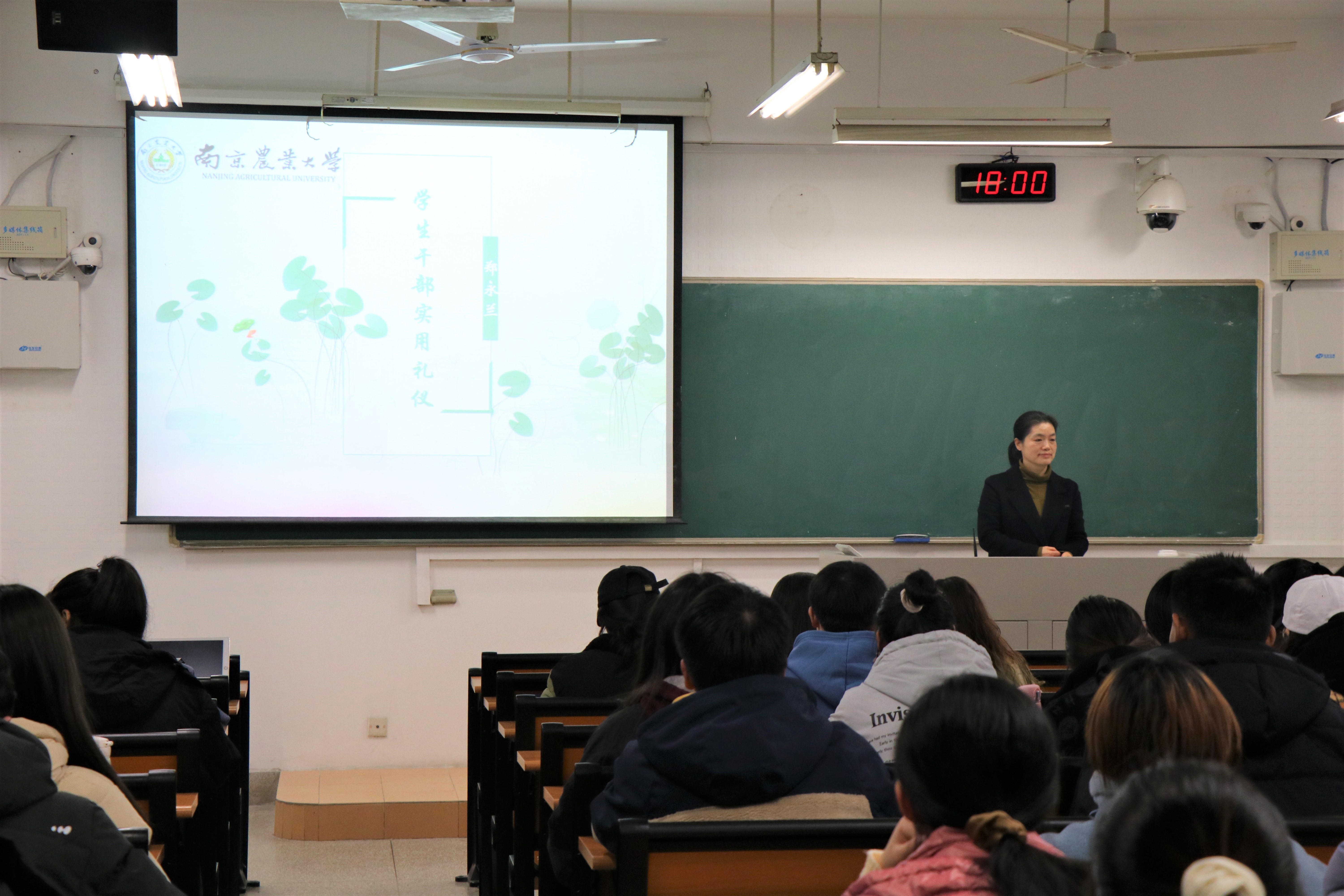 在教学楼A206教室举办了学生干部实用礼仪培训。本次报告会邀请了小宝寻花