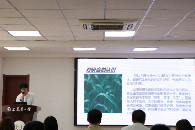 第八届研究生会主席席浩杰进行述职报告,席浩杰首先介绍了此次换届选举的目的,即选举培养一批新的领导班子,使学生工作更加高效地开展。