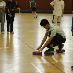 本次趣味运动会共有5个项目,分别是:一羽中的、踩石头过河、拔河、班级3v3篮球对抗赛和跳大绳。比赛项目既有趣味性又具有挑战性,同学们积极参与,热情四溢,大家团队协作,不仅锻炼了身体,而且增进了大家的友谊。