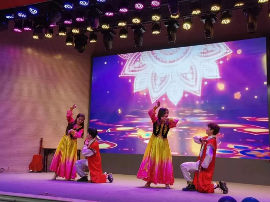 一直都是一个多民族融汇交流的和谐家庭,来自五湖四海的各民族同学们在这里朝夕相处,共同进步。接下来的节目为民族舞蹈串烧《“舞”彩缤纷》,该节目涵盖了维吾尔族、蒙古族、藏族等少数民族的舞蹈。