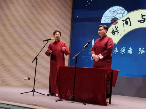 由张程、陈辰两位同学带来的相声《时间与青春》以诙谐幽默的方式告诫了我们广大青年学子要珍惜时间、努力学习。