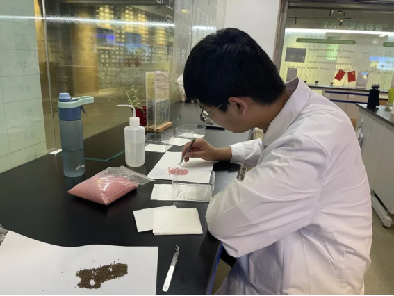 经过研究员老师的培训,我们学会了如何测量种子的发芽率:挑选出对应的植物种子,将其按照10*10摆放在湿润的滤纸上,做4个重复,放于培养箱中,培养一定天数后(视不同品种而定),便可统计发芽率。