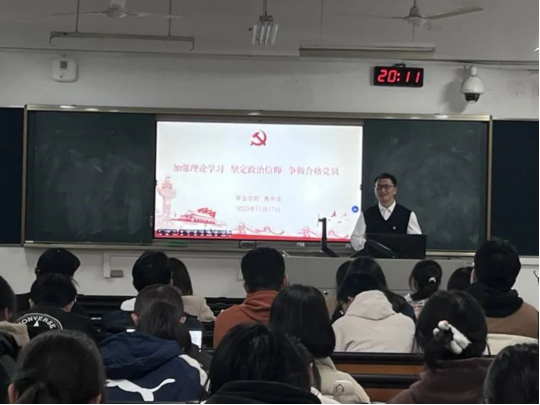 在培训课上,高务龙副书记以“加强理论学习 坚定政治信仰 争做合格党员”为主题,围绕“合格党员标准”“加强理论学习”以及“争做合格党员”三个方面,引导同学们努力成为合格党员。高务龙通过对习近平总书记关于合格党员标准的提炼,深入阐述了合格党员核心要义“忠诚、牺牲”;通过对党的十八大以来历次主题教育主题的提炼,深入阐释了加强理论学习、锤炼政治能力、提升文化修养的重要性;通过对习近平总书记在中国人民大学考察的重要讲话精神的解读,深入阐释了成为合格学生党员的路径方法。
